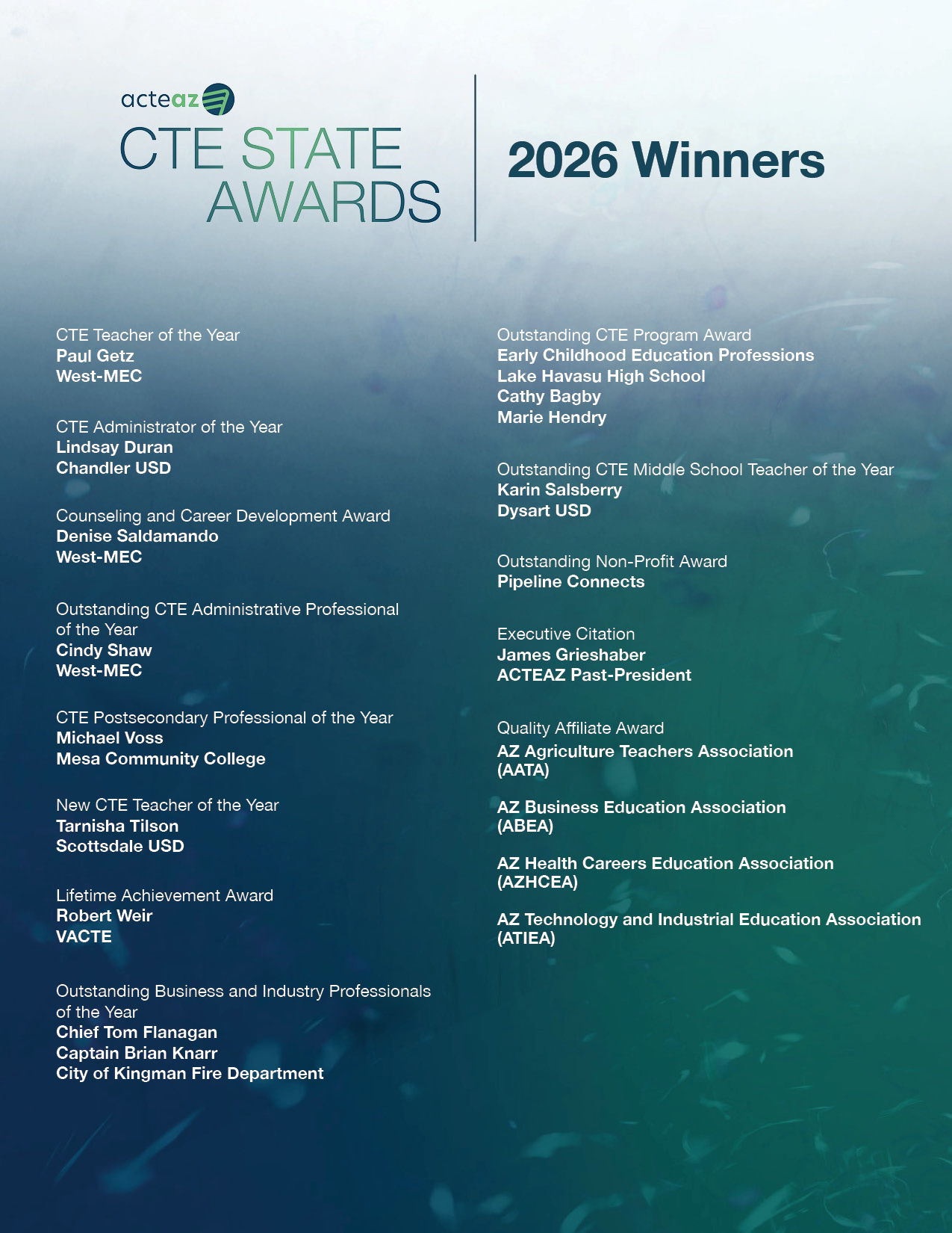 • Congratulations to the 2026 ACTEAZ CTE State Award Winners!